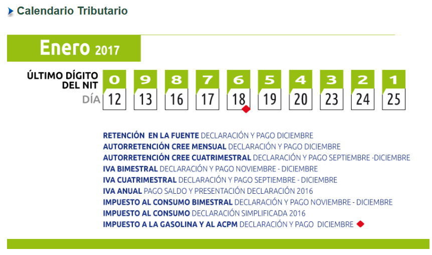 Hoy comenzaron los vencimiento de las obligaciones tributarias del año 2017. Bares y restaurantes especial atención a la declaración del impuesto al consumo. Todas las empresas ponerse pilas a presentar sus declaraciones de retenciones e iva para no caer en sanciones por extemporaneidad.