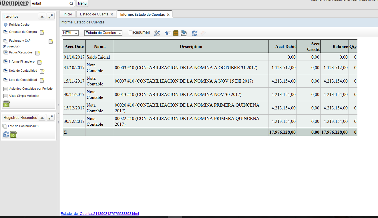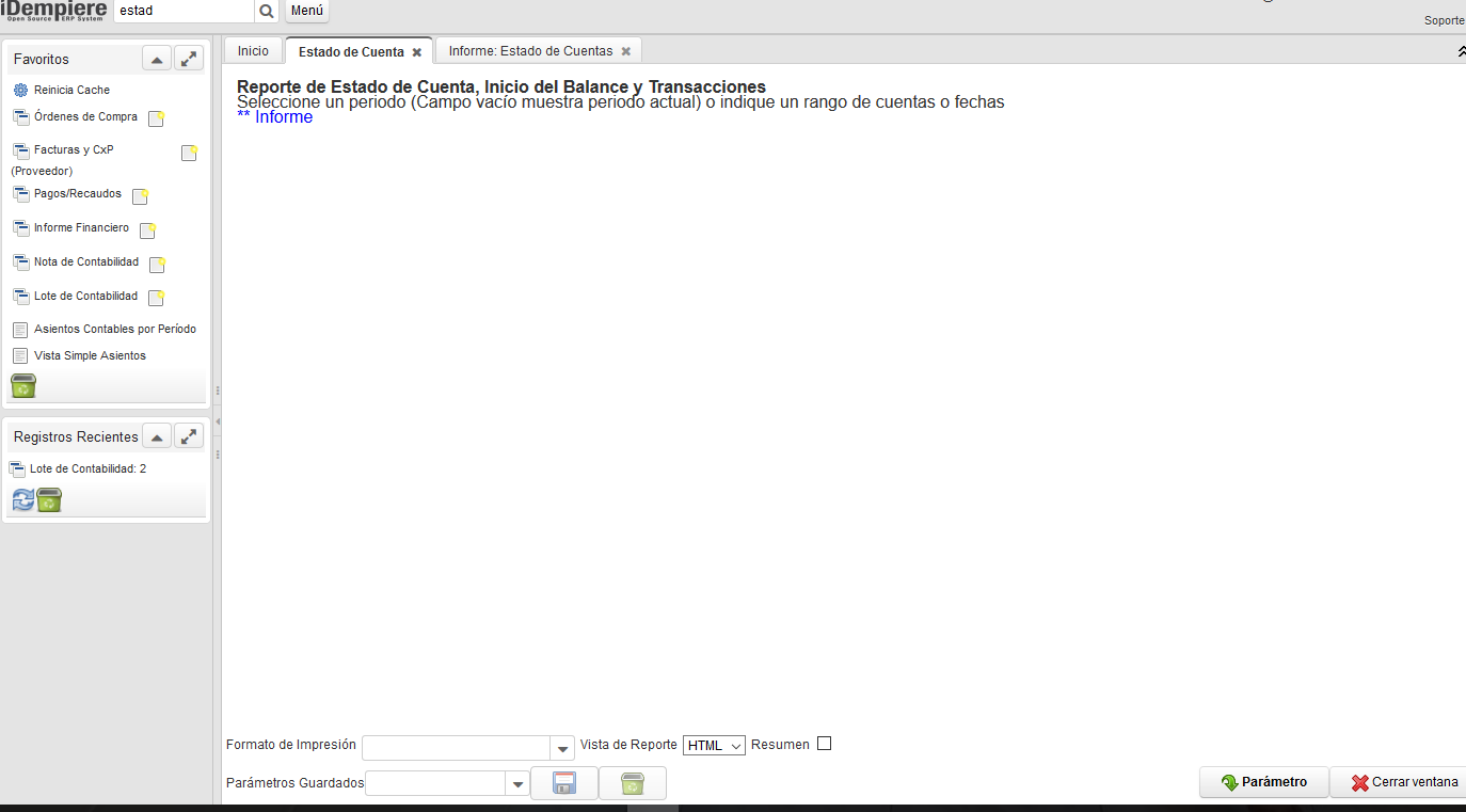 Pasos para generar un estado de cuenta en Idempiere :